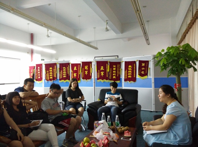 5月26日下午3点30分,学生干部工作交流茶话会在经管楼208进行,参与此次茶话会的有政法学院辅导员钟丽华老师与政法学院学生会主席叶创新、秘书长潘才彬、学生会副主席们和各部门部长。