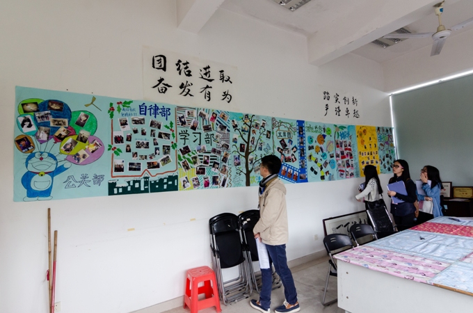 评委们参观学生会各部门的风采展示