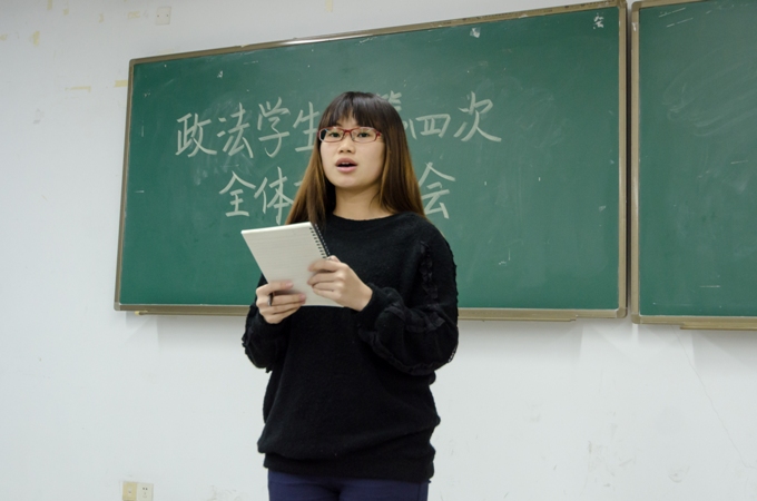 政法学院学生会副主席尹素欣发言