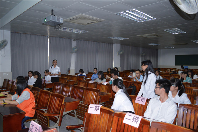 比赛分为四阶段,本次进行的是第一阶段的初赛,第一阶段由政法学院2014级莞城10个班的同学共同参与,两两辩论,决出进入下一轮的队伍。比赛评委由政法学院辩论队队员担任。