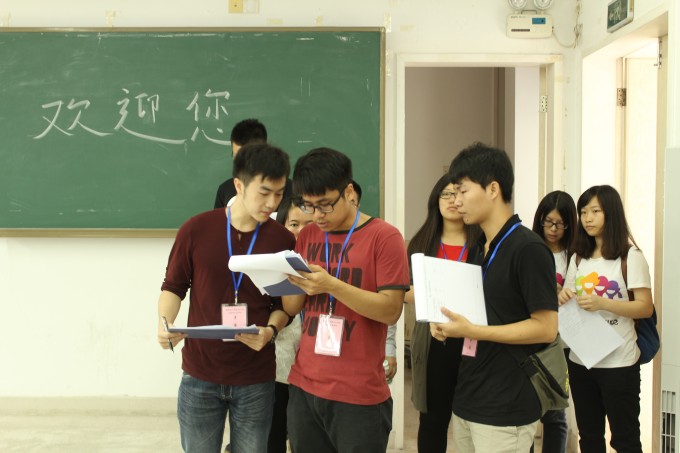 参观完毕后评委考察团回课室216,开始第二轮的考察工作,整体风貌考察。在学生会副主席叶创新的带领下,全体成员齐声唱起政法学生会会歌——《我相信》。积极向上、奋发蓬勃的会歌很好展现了学生会的精神面貌,赢得评委考察团的阵阵掌声。接而,考察团开始抽查出席人员,进行笔试知识考核。此次笔试考查内容主要涉及学生组织的相关知识以及作为学生组织的一员所需具备的基本素质考核。与此同时,政法学院学生会副主席叶创新针对过去一年来政法学院学生会的工作成绩进行了简洁而有力的总结概括,寄予对接下来一年的新的工作展望。而现场提问环节更是精彩不断,面对评委团的一个个问题,学生会全体委员对答如流,争相回答,力图更好体现学生会内部融洽,注意与同学交流沟通,而对外方面,又不乏沟通联系的先进集体形象。