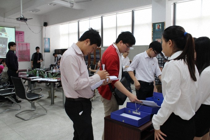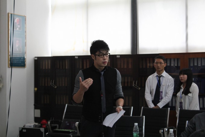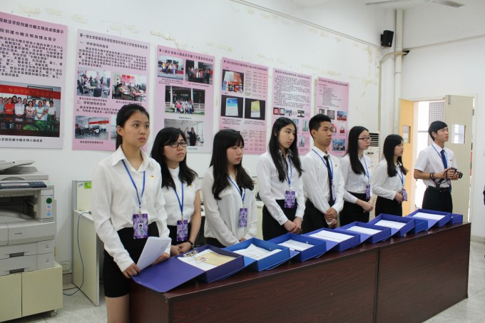 本次考评走访会议首先由政法学院团总支书记邓磊作团总支演讲解说。邓磊书记先是对指导老师和各位团总支书记的到来表示热烈的欢迎,接着对政法学院团总支的内部机构和活动宗旨等进行介绍,随后还详细列举了政法学院团总支在2013-2014学年度进行的各种团日活动、特色院系活动、志愿活动、法律宣传等。最后,邓磊书记对政法学院未来的发展方向和准备工作进行了简单的阐述,同时他也表示希望能加强政法学院与其他院院系的沟通与合作。然后团员代表肖映冰对走访考评材料作了详细介绍,校团委指导老师和各院系团总支翻阅了考评材料并对准备材料的工作人员提出了建议。