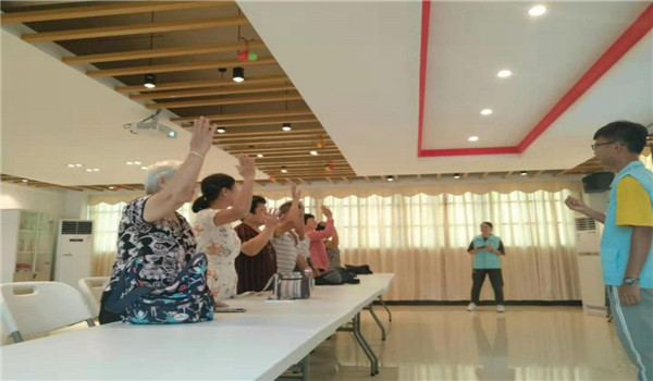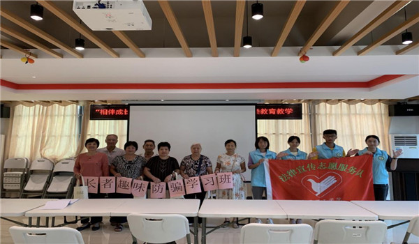 在课堂互动小游戏中,讲师讲解规则,长者们热情高涨、积极参与,有时发出爽朗的笑声。一时间,课堂上充满欢声笑语,气氛活跃,笑容洋溢在每个人的脸上。同时,为了加强长者们的防骗意识,我们志愿者准备了情景表演,让长者们从中识别真正的骗子,增强长者们在生活中识别骗子的能力。最后,我们志愿工作者们和长者们一同合影留念,记录下这个快乐的宣讲时光。