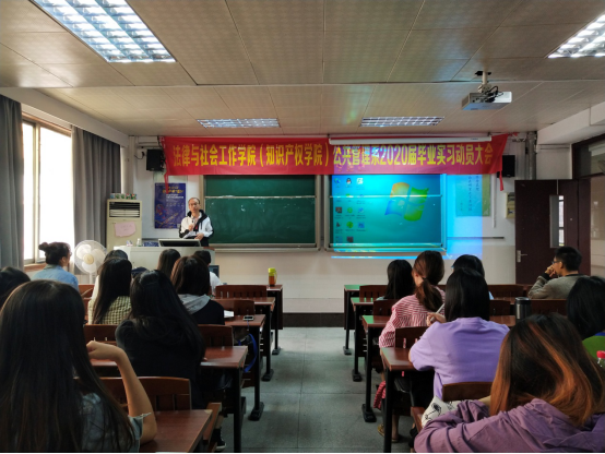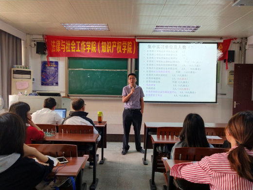 陈洪波老师首先给同学们强调毕业实习和毕业论文工作的重要性,希望同学们高度重视、认真对待、服从安排。接着由魏红征老师给同学们介绍实习单位,让同学们对单位有初步的了解和认识。然后,由黄海蓉老师给同学们宣讲毕业实习的文件精神和相关要求。本次毕业实习,除少数同学自行联系实习单位进行分散实习外,绝大多数同学都服从学院安排进行集中实习,黄老师希望同学们在实习过程中遵纪守法,把所学的理论知识应用于实践,在实践中多观察多思考,认真撰写实习周记和实习报告,运用校友邦平台作好实习管理。