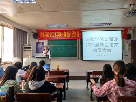 接下来,由黄海蓉老师给同学们宣讲毕业论文写作的相关注意事项,从论文分组、选题、格式、重复率检测等方面进行讲解。希望同学们重视毕业论文,严格按时间进度开展毕业论文相关的各项工作,注重学术规范,深入实际生产和生活,发现公共管理中存在的问题,展开调查研究,运用公共管理的相关理论进行分析,写出高水平的具有应用性的毕业论文。