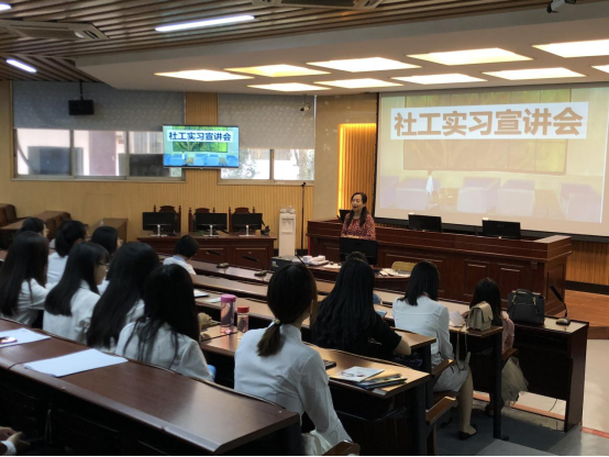 为推动社会工作系2016级学生岗位实习与毕业实习工作顺利开展,2019年11月7日,社会工作系在3044AM永利集团莞城校区六号楼2号教室模拟法庭开展实习宣讲会。