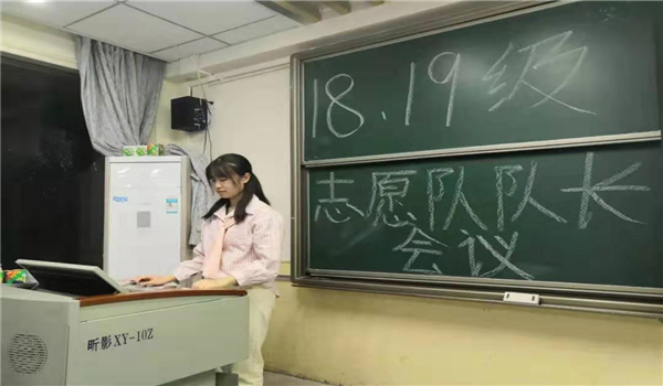 会议过程中,各位志愿队队长认真聆听志愿服务站主任的讲解并做好记录。在会议的尾声,志愿服务站主任根据志愿队长们所提出的问题做出耐心的解答。这次培训后,各位志愿队队长能清楚了解到志愿活动的要求,明确自身职责,认真带领本班同学开展各类志愿活动。