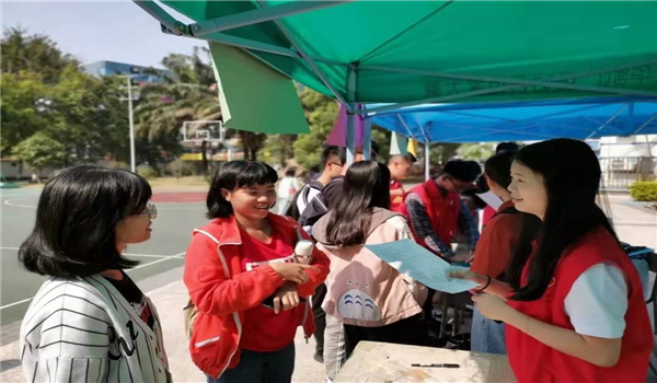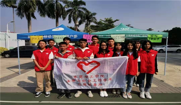 11月15日,法律与社会工作学院(知识产权学院)团委学生会志愿服务站在莞城校区图书馆前篮球场旁举办“国际大学生节”摆摊宣传活动。