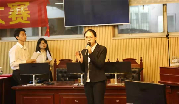 随后进行比赛的第二个环节普法课件展演,三位同学为我们讲解了与未成年人和家庭暴力等有关的法律知识,他们自信沉着、语言流畅,给台下的评委和同学留下了深刻的印象。