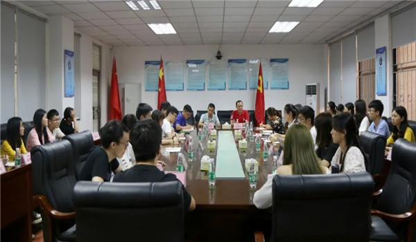 会议由党委副书记丘永辉主持,党委书记杜应发、学工办主任钟丽华、辅导员邱可荣、刘海波、邹欢、党建办及团委学生会的学生干部们参与了本次会议。