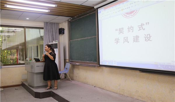 在学风会议上,钟丽华老师就先进班集体评分细则给学生代表进行了讲解。钟丽华老师提出,学院将开启“契约式”学风建设新模式,由各班自行制定合理目标,并严格按照协议内容开展活动,而学院将为各班提供相应的协助,并对表现优秀者给予奖励。