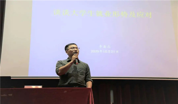 为了让同学们更深入的认识自我、对自己未来的生活愿景更加清晰,更好地安排大学四年的学习生活,我院于10月21日19:00在莞城校区学术报告厅举办主题为“大学生就业形势及应对”的新生入学系列讲座。本次讲座由我校就业办李春志老师担任主讲嘉宾,辅导员邱可荣与2020级新生参加此次讲座。