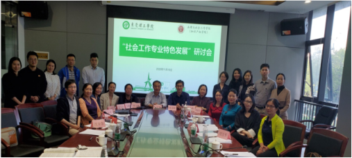 会议由我院教学副院长朱晓红主持。会议特邀南开大学关信平教授、深圳大学徐道稳教授等高校专家、东莞市委政法委、东莞市民政局、东莞市司法局、东莞市南城街道公共服务办以及东莞市社会工作协会等行业代表参会,学校教务处副处长许燕转、学院领导及社会工作系全体教师参加了本次研讨会。