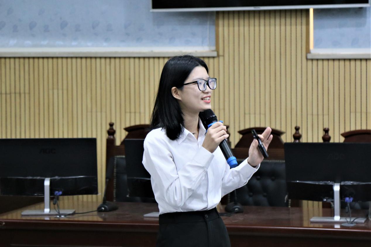 此次动员会特邀请了来自2018级行政管理专业的挑战杯优秀代表吴少芬向同学们详细介绍了她自身的参赛过程。吴少芬同学在今年凭借“因楽音乐馆-中国新型音乐空间领跑者”项目获得“赢在东莞”科技创新创业大赛大学生组一等奖,实力摘下东莞市“三八红旗手”荣誉称号,刚刚获得2019-2020年度“杨振宁奖学金”。她以自己参加挑战杯的经历向同学们详细分享了她自身的参赛过程,包括前期的组队和后期的比赛准备。她强调:世界上没有那么多逆袭,只有日复一日的付出。