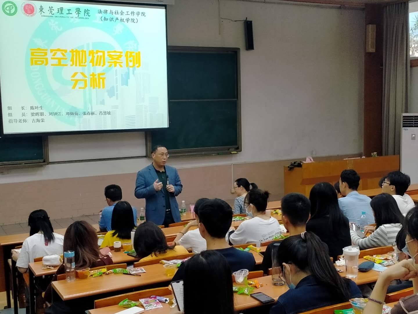 10月22日下午,2020级法学(专插本)1班在莞城校区第一阶梯教室举行了《民法典》研讨会。本次研讨会旨在学习民法典精神,对接地方法制建设需求,营造学习法典并运用法典、崇尚法典的良好学习氛围。参加研讨会的嘉宾有吉海荣老师、龚红兵老师以及韩中节老师,通过对共签共债、参加危险活动损害赔偿、高空抛物以及婚内出轨四个话题的分享现场师生学术探讨交流以及老师点评,营造了良好的学习氛围,提高了团队学习能力。同学们在这场民法典研讨会上收益颇丰! (民法典研讨会)