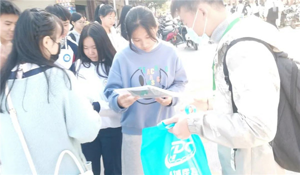在队伍成员的宣讲中,本次活动的宣传物资全部派发成功,并且有很多的学生自动前来领取物资。