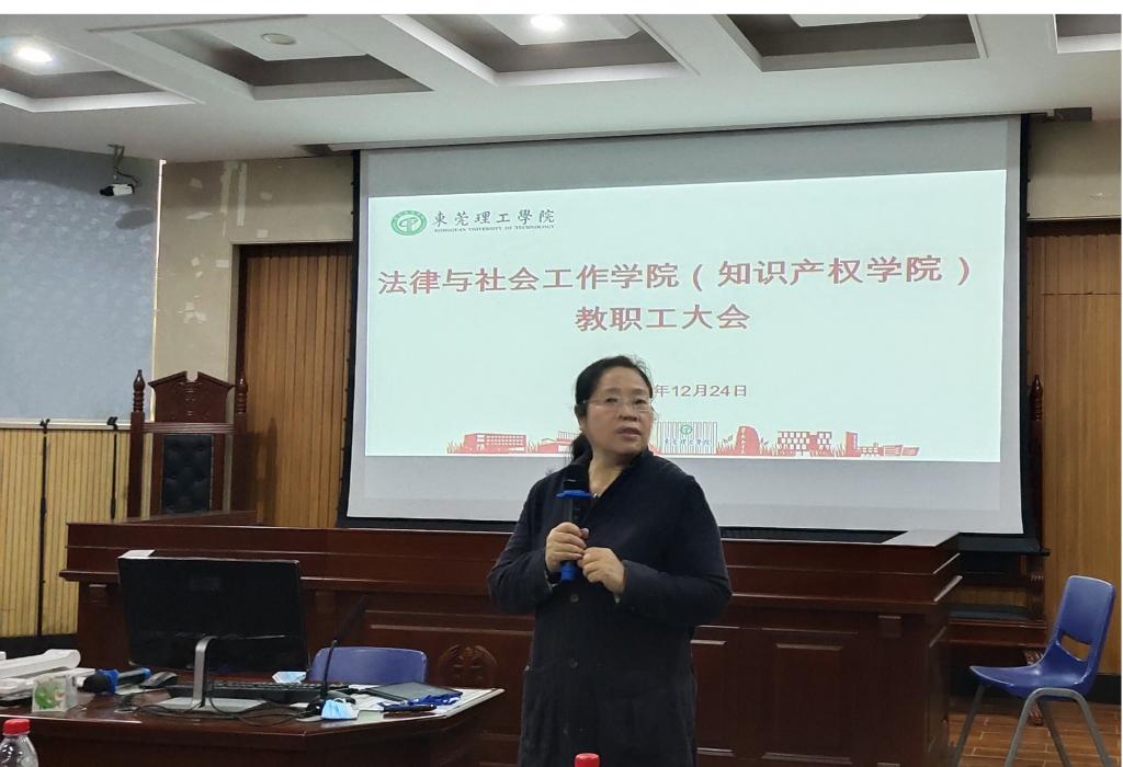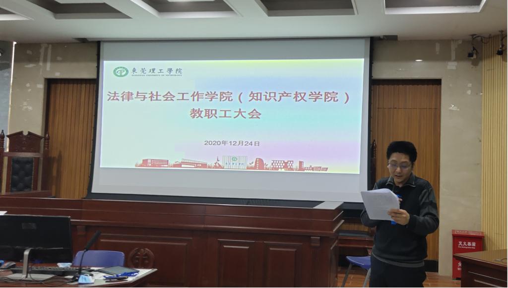 12月24号下午,我院在莞城校区模拟法庭召开全院教职工大会,会议对2020年学院工作和分工会工作进行总结,学院全体老师参加会议。