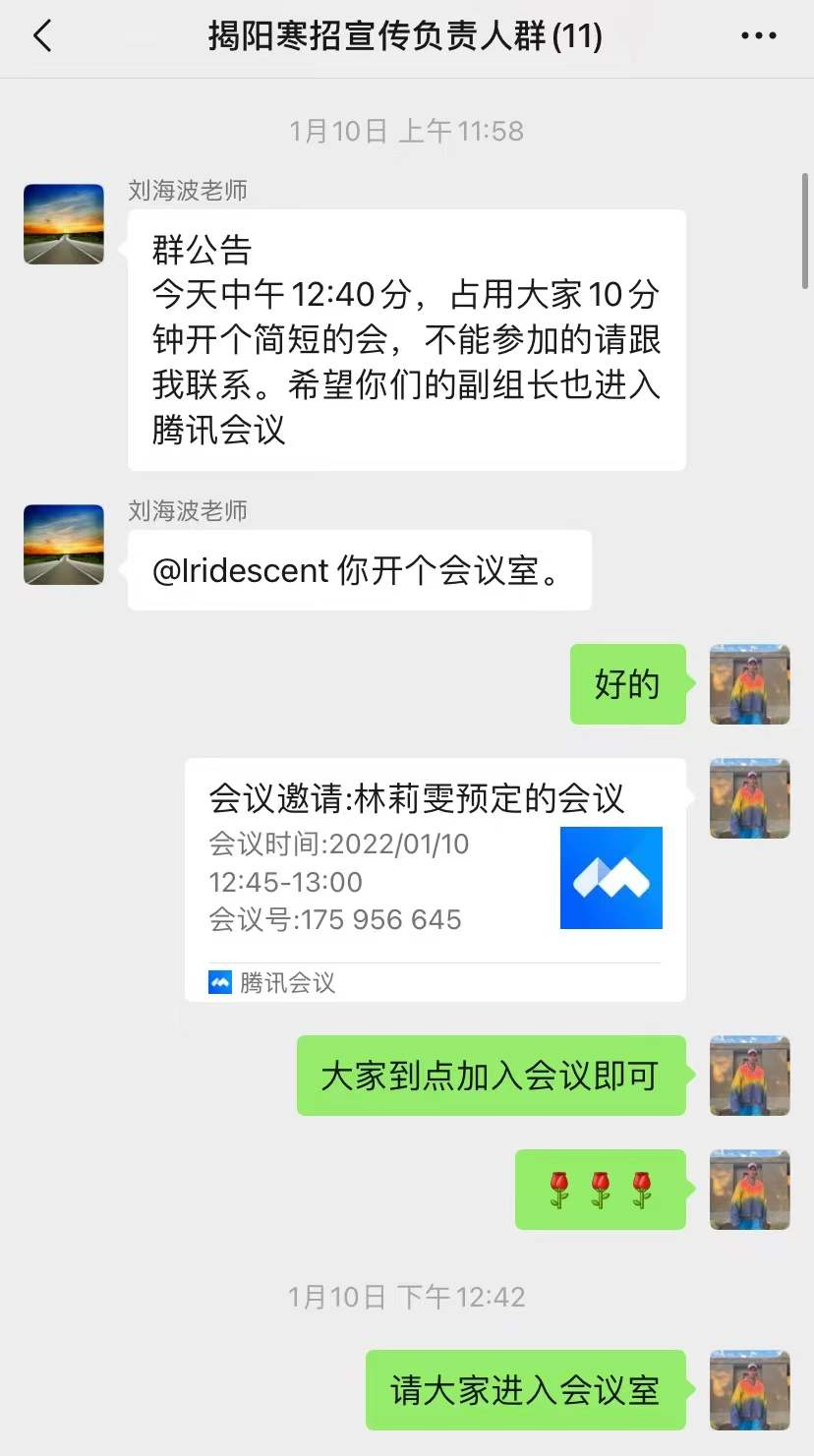 为确保2022年寒假招生宣传工作的顺利进行,1月10日下午,法社学院举行2022年寒假招生宣传揭阳队伍线上工作会议。寒招会议由相关工作负责人及寒招宣传揭阳分队各个队长参加,刘海波老师主持。