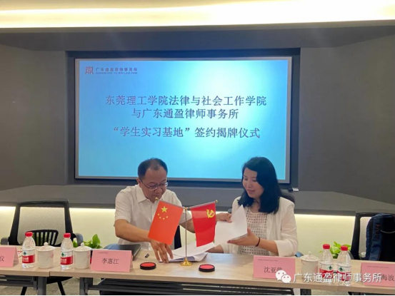 4月6日早上,3044AM永利集团法律与社会工作学院(知识产权学院)与广东通盈律师事务所“教学实习基地”签约揭牌仪式,在广东通盈律师事务(以下简称“通盈所”)所隆重举行。