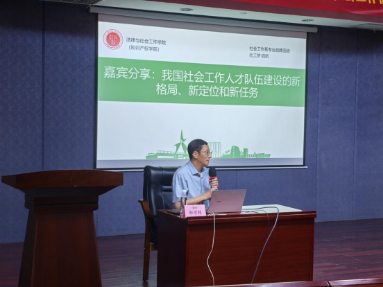 2025年5月22日,“社工梦·启航 名师大讲堂 中国社会工作学会邹学银副会长讲座”在莞城校区学术报告厅举行。本次活动由社工系副主任张雪老师主持,东莞市委社会工作部丁文卿副科长、社会工作系成伟主任、党曦、刘静、张子庄等老师及社会工作系大一至大三学生代表参加了本次讲座。