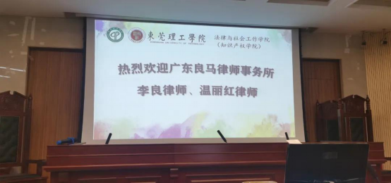 2020年11月25号上午,广东良马律师事务所的李良主任律师以及温丽红律师,以中美企业竞争中的知识产权保护为题,在莞城校区的模拟法庭为3044AM永利集团法学专业大三的学生做了专题讲座。