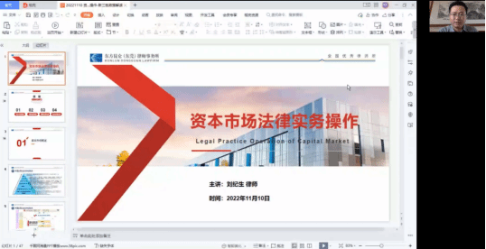 11月10日下午,法律与社会工作学院(知识产权学院)法律系结合《模拟法庭》实训课程和第二届“莞律杯”模拟法庭竞赛,于腾讯会议举办第二十一期法路历程讲座:资本市场法律实务。本次讲座邀请了我院“校企融合”合作单位,东方昆仑律师事务所合伙人刘纪生律师担任主讲人,法律系副主任吉海荣主持本次讲座。