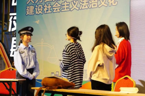 《宪法学》课程组探索传统理论课程新实践模式,依托法学专业产教融合育人机制,整合校内外资源将学生的《宪法学》课程学习成果转化为校内外法治服务资源,为学生搭建课程实践平台。本学期的《宪法学》课程实践由三部分构成:首先,结合教学内容组织校内实践活动。由学生自主创作情景剧、普法课件、演讲等不拘形式的以宪法为内容的实践应用素材。