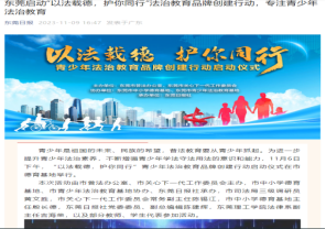 第二,以这些素材为基础,师生服务地方宪法普及、宣讲和教育需求。11月6日下午《宪法学》课程教师吉海荣带领部分学生和学生作品参加东莞市“以法载德,护你同行”青少年法治教育品牌创建行动启动仪式;