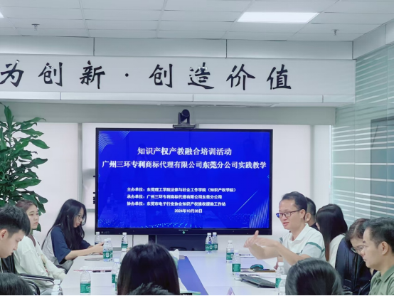 10月28日下午,我院知识产权系主任张建超老师带队前往广州三环专利商标代理有限公司(东莞分公司)进行实地参观与交流。本次活动旨在关于知识产权专业推进校企合作、产教融合有益探索,为知识产权专业的学生提供一个近距离接触并了解知识产权代理实务平台的机会,教师与学生赴一线观摩学习,将课堂延伸至实务现场。