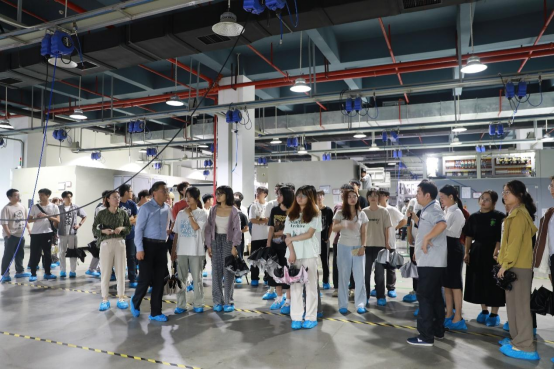随后,学生们带着问题在正业科技总裁办主任滕娟的带领下,参观了企业展厅并对企业在智能制造、电子信息等领域的最新成果有了初步了解。紧接着,师生们进入生产车间,近距离观察了高度智能化的生产过程。在这里,机器设备在先进的软件和算法驱动下高效运转,几乎不需要人工干预,学生们惊叹智能化生产线的精准与高效,深刻体会到了科技创新对于提升生产效率、降低成本、保证产品质量的重要作用。