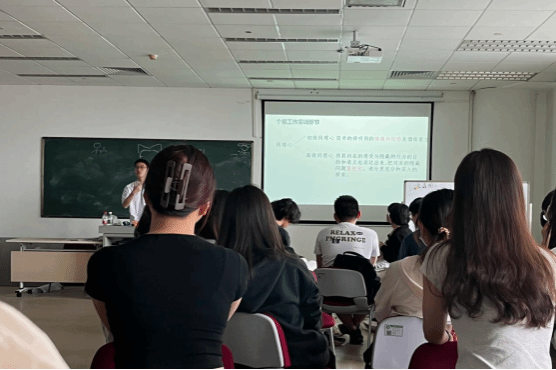 在22社会工作1、2班中,杨瀚博老师为同学们带来了趣味横生的个案实训课堂。瀚博老师先是带同学们温习了个案工作会谈的相关技巧,并提供了许多案例,让各位同学积极代入社会工作者的职业角色,将课本中的知识学以致用。紧接着,各个小组之间开始进行个案工作会谈实践。瀚博老师不时地走近观察、倾听、记录同学们在会谈过程中的表现。有时亲身上阵,加入到同学之中,充当“案主”,引导同学顺利进行会谈工作。会谈工作结束后,他精准点评,表扬了同学们做得出彩的部分,也指出同学们的不足并鼓励其加以改进。最后是答疑环节,同学们踊跃地提出自己在个案工作实训中所遇到的难题,向老师寻求帮助,而瀚博老师也耐心地一一解答。