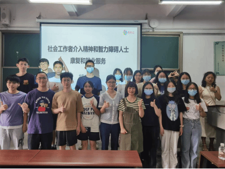 为增进同学们对残障社会工作实务的了解,2023年5月29日,在2020社会工作1班《残障社会工作》的课堂上,东莞市展能社会工作服务中心残障事业部总监吴秀娟,受任课教师刘静的邀请,作为校外导师为同学们开展了一次主题为“社会工作者介入精神和智力障碍人士康复和就业服务”的实务分享课。