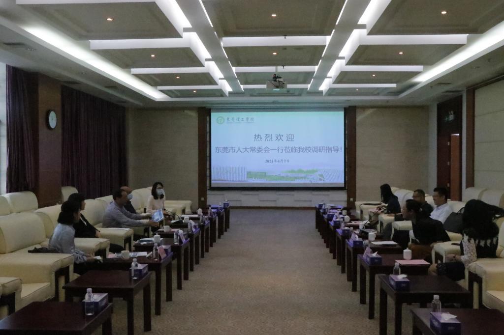 4月7日上午,东莞市人大常委会副主任、市人大法制委主任委员何跃沛率领市人大常委会法工委主任赵文群、副主任方淑敏、法规科科长冯丽娟、办公室主任邓肖莹一行五人到我校立法基地就基地运作以及发展情况进行了调研座谈。校党委委员、副校长李文芳、我院院长郑玉敏、党委书记杜应发、副院长沈亚萍、办公室副主任蔡贵峰、立法基地秘书石璠参加了座谈会。