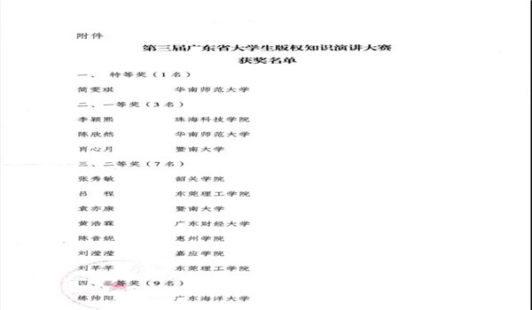 第三届广东省大学生版权知识演讲大赛“双”料喜报