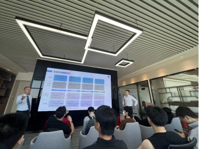 在广东省华中粤创知识产权运营管理有限公司,龚主任和同学们受到了叶文俊总监的热情接待。叶总监首先介绍了华中粤创作为东莞新能源产业知识产权运营服务平台的运营单位,在2023年度里取得的优异成果,华中粤创助力东莞市专利转化需求对接工程进展顺利推进,实现了高校与企业的“双向奔赴”。