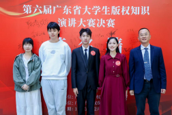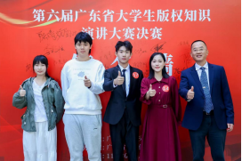 近期,由广东省版权局主办,广东省版权保护联合承办的第六届广东省大学生版权知识演讲大赛决赛落幕。在我院龚红兵老师,胡庆乐老师,宋弋老师以及邓磊老师的指导下,法社学子继往开来,不负众望,在此比赛中再创佳绩。本次比赛我校共派出4名选手参赛,其中,2024级法学卓越班谢淯淮同学荣获三等奖;2024级法学卓越班徐观如同学荣获优秀奖。特此喜报!