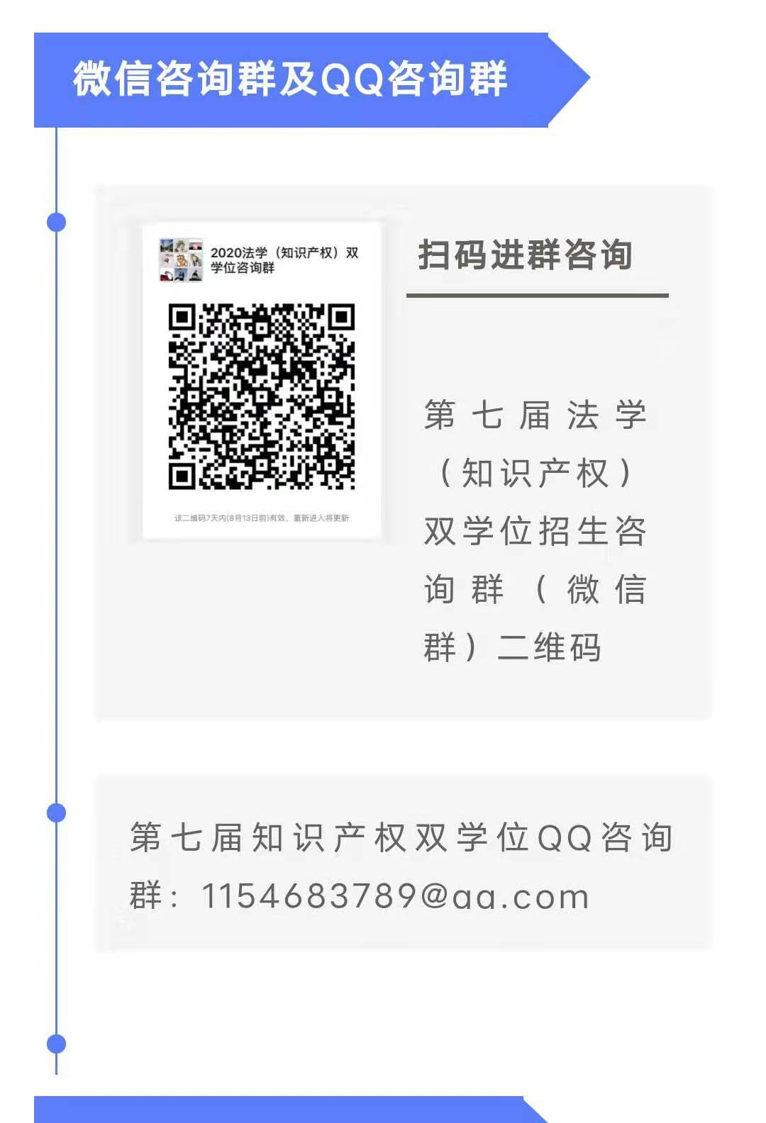 第七届知识产权双学位QQ咨询群:1154683789@qq.com