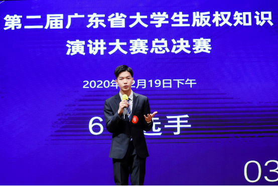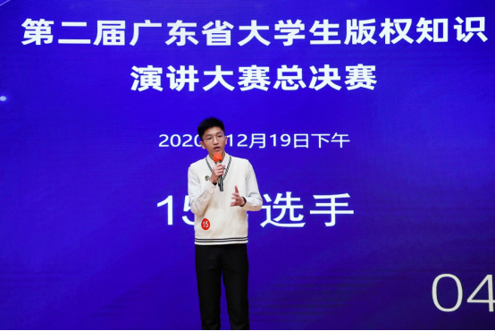 2020年12月19日下午1点45分,我院参赛队员正式亮相第二届广东省大学所版权知识演讲大赛。经过一轮紧张的抽签之后,比赛顺序出炉了,我院四位参赛同学的比赛顺序分别为6号伍尚杰、15号卢柱荣、23号张君瑶以及25号黄子茵。四位同学在台上有着出色的表现,从容大气地进行演讲,各自通过演唱歌曲、讲述历史、表达情感、运用社会热点等方式吸引评委与观众的注意,引人深思,且游刃有余地在五分钟之内顺利完成了全部演讲,收获到了热烈的掌声。令人可喜的是,四位同学均收获到不俗的成绩。比赛结果将在未来几天正式公布,请耐心静候。