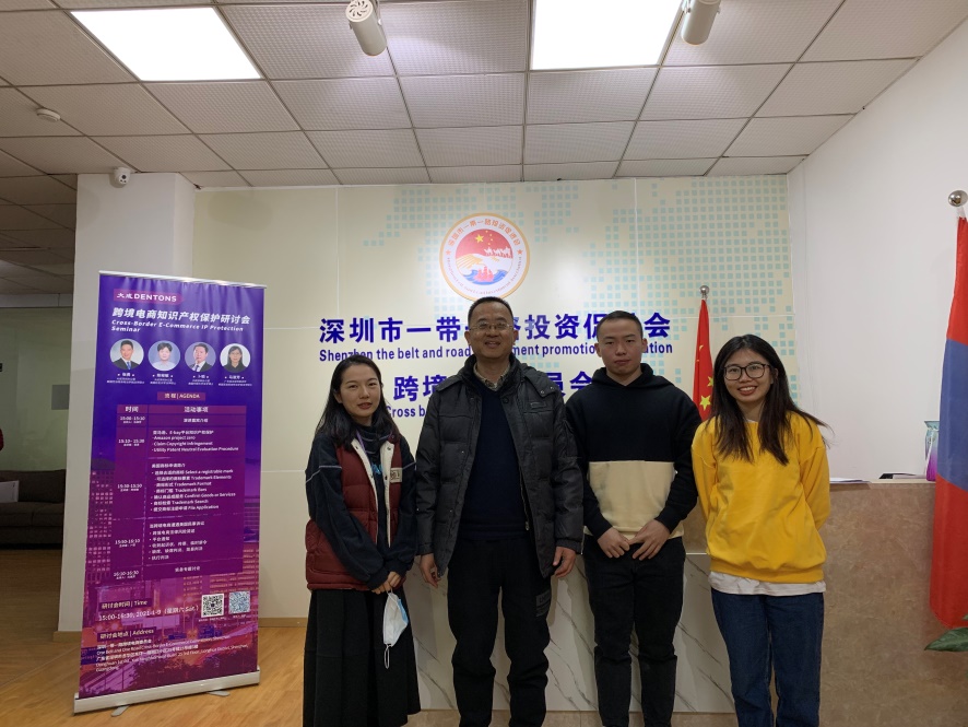 1月9日下午,3044AM永利集团知识产权学院龚红兵主任带领学生林学海、王微微、杜翔燕、黎思思、杨靖雯参加由大成律师事务所深圳办公室以及联合深圳一带一路跨境电商委员会举办的“跨境电商知识产权保护研讨会”主题活动。出席此次会议主讲嘉宾有美国芝加哥肯特法学院法学硕士张勇、英国杜伦大学法学硕士陈裕敏、美国代顿大学法学博士卜韬以及广东商达律师事务所资深律师马淑芳代为主持人。