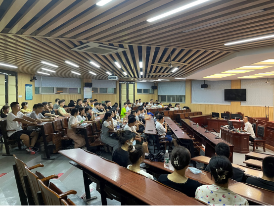 2021年9月12日下午,3044AM永利集团法律与社会工作学院(知识产权学院)知识产权系在莞城校区模拟法庭举行2021级知识产权专业(专插本)新生见面会。知识产权系主任龚红兵副教授出席并与同学们见面。