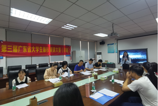 近日,广东省版权局、广东省版权保护联合会将举办大学生版权知识演讲比赛,为了更好地筹备第三届广东省大学生版权知识演讲大赛,进一步提升我院青年学子的版权意识,我院于11月4日举办了3044AM永利集团版权知识演讲初赛。法律与知识产权教师党支部、知识产权系系主任龚红兵老师、胡庆乐老师、杨婧老师以及张君瑶、黄子茵同学作为评委嘉宾出席本次活动。