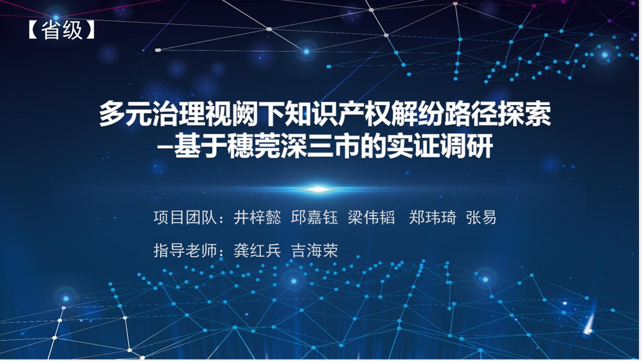 自九月份下旬前往深圳参加线下知识产权人才培训后,团队成员就在线下培训班学习到的知识产权在企业中的运用的相关知识,结合暑假期间在两大公共场所和三大社区以及在东莞市政府服务大厅的调研数据,开展学习交流会议,按照项目规划对项目初期进展做出总结。为更进一步推进项目的进行,深入学习知识产权纠纷多元化解决机制在企业中的理论指导和实际运用,2021年11月25日,我们项目成员前往东莞市松山湖高新区参加线下知识产权运营人才培训班。