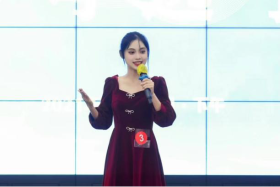 一场成功的演讲,不仅需要言谈举止大方自然、充满自信、镇定自若,还要细细观察观众的反应,与观众进行眼神交流,深入观众的内心。初赛时,刘芊芊同学优异的表现力便感染了现场的所有评委和选手,出色的主持业务能力和临场应变能力让她取得了院赛一等奖。