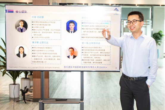 之后,我们来到了广东省华中粤创知识产权运营管理有限公司。华中粤创成立于2019年,以原华为、腾讯、创维、艾默生等知名企业知识产权负责人为核心,以具备工科与法学双重背景的海归为骨干,共同组成东莞知识产权运营团队。华中粤创整合各方优质资源,为客户提供专业的知识产权战略支撑,从研发、产品、市场和品牌多维度为客户增值赋能。