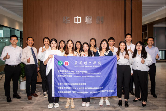(▲师生在广州市知识产权法院东莞市中级人民法院东莞巡回法庭合影留念)