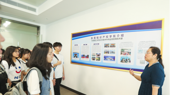 首先同学们来到了广州市知识产权法院东莞市中级人民法院东莞巡回法庭。广州知识产权法院东莞巡回审判法庭是东莞市市场监督管理局与广州知识产权法院、东莞市中级人民法院共同建设,就近为东莞企业、群众提供案件受理、诉调对接、远程审判、巡回审判、法治宣传、查询咨询、接访答疑等诉讼服务的机构,也是广州知识产权法院在全省管辖范围内(除深圳)的第一家可以直接立案受理普通外观、实用新型类一审民事案件,可以直接向当事人发出受理通知书等诉讼文书的派出机构。