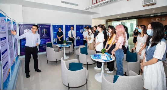 (▲华中粤创的工作人员在解答同学们的疑惑)