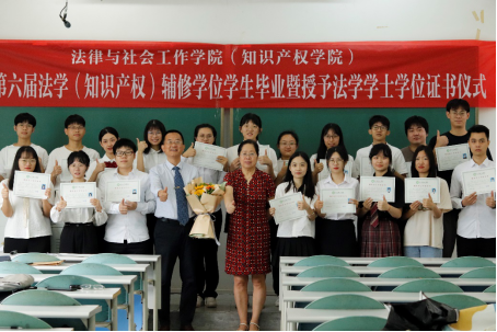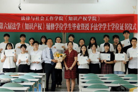 2022年6月22日上午10:30,我院在松山湖校区6B203课室举行了2022年第六届法学(知识产权)辅修学位学生毕业暨授予法学学士学位证书仪式。本次仪式由知识产权系主任龚红兵副教授主持。