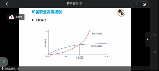 第三个版块,IP各职业发展规划。杨熙老师围绕着“了解自己和做永远的学习者”展开,并鼓励我们耕耘在“知识产权”这片沃土里。强调“知识产权”是新兴行业,可以用15到20年成长为该领域专家。李嘉洛同学说:爱一行,干一行。杨老师让我们做永远的学习者,我将保持“耕耘者”心态。