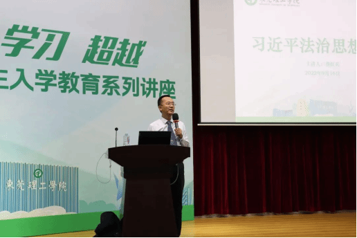 为提高新生法律意识,加深对习近平法治思想的理解,营造法治氛围,2022年9月16日,新生系列讲座第一期在莞城校区学术报告厅举行,特邀我院知识产权系主任龚红兵老师作为主讲开展习近平法治思想教育讲座。